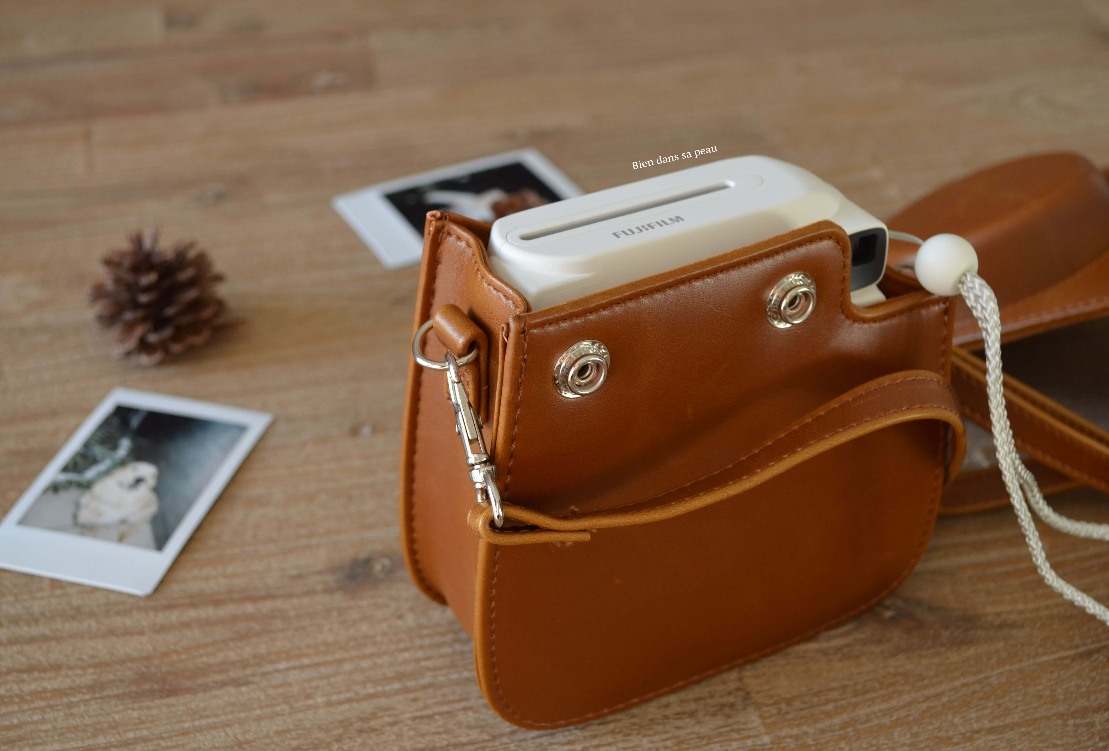 Le Père Noël de Maman a trouvé ce pack de luxe hyper valable : pour le prix de l’appareil photo (79 euros je crois, je n’ai pas osé demander les gars!), le pack fournissait la sacoche en cuir et 1 pellicule de 10 films. À savoir qu’on trouvait principalement dans le magasins des pochettes en plastique, moins classes ! Et moins durables je pense. La sacoche donne un côté rétro et baroudeur au look, j’adore ! L’inconvénient, c’est qu’ils auraient dû prévoir un compartiment pour ranger la photo qui sort car après je ne savais pas où la mettre.