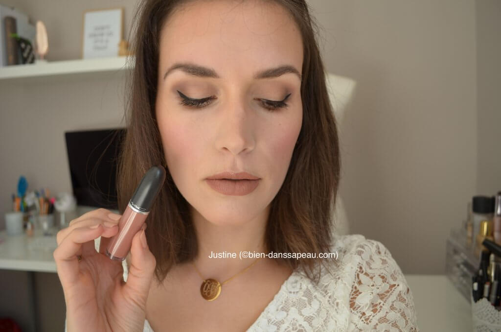 Dans cette vidéo, je porte le Rétro Matte Liquid Lip colour de MAC dont la teinte Burnt Spice (32 teintes sont proposées en tout) m’a subjuguée ! Le rose boisé nude parfait que je recherchais. En outre, je regrette un peu le fait qu’il soit transférable et pas des moindres! Je ne crois pas au “sans transfert” mais là, la matière est assez épaisse et on en laisse pas mal sur la joue de son chérubin si on veut l’embrasser. Deuxième point négatif : il marque énormément les stries sur mes lèvres, je dirais même qu’il les accentue. En revanche, sa facilité d’application grâce aux éléments décrits dans la vidéo et sa tenue sont excellentes !