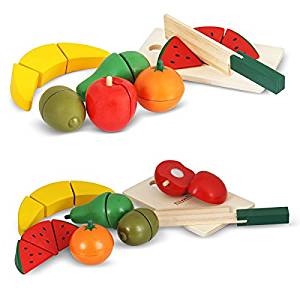 – fruits et légumes en bois à couper et pizza !