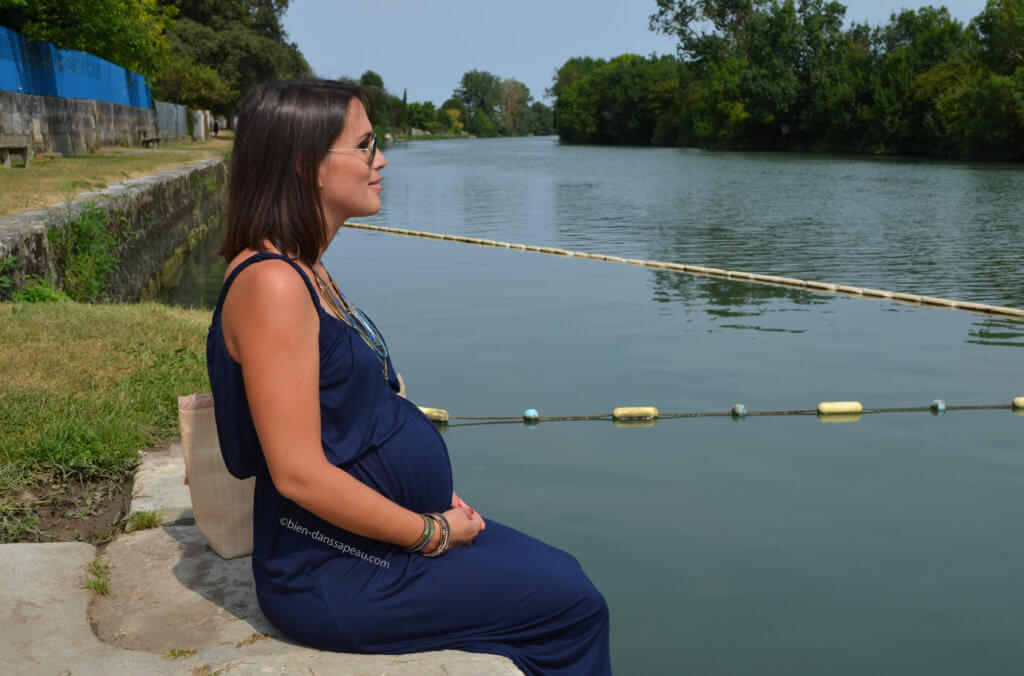Salut la compagnie ! Récemment, j’ai encore fait immortaliser un look de grossesse à 36 semaines + 5 jours. J’avoue que ce ventre arrondi  va me manquer et que je profite de la belle lumière de l’été pour avoir de jolies photos stylées, en souvenirs de ces 9 mois où j’ai porté la vie…