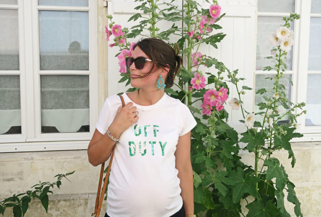 Le noir aura au moins eu l’avantage de ne garder aucune tâche ou trace de sueur par exemple. Le hic de ce genre de produit quand tu accouches début août, c’est que ça tient très chaud.