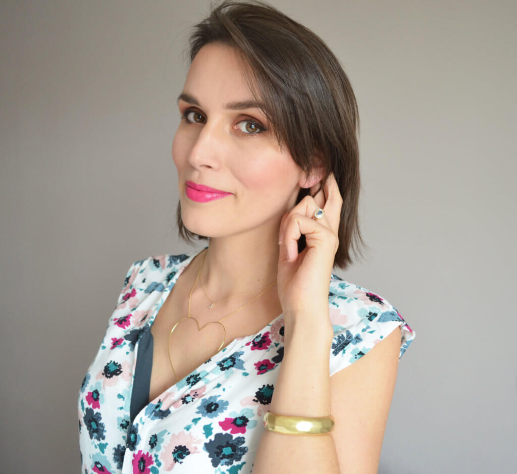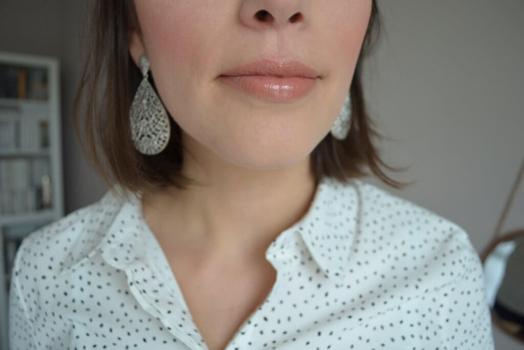 Sur les photos ci-avant, je porte un nude (teinte 100) et un fuchsia assez froid (teinte 102). Ces rouges à lèvres sont disponibles en deux formules professionnelles, opaque et transparente, pour choisir son intensité. La formule « Power Pout » à forte pigmentation est opaque, tandis que la formule « Take a Hint » est transparente avec une touche subtile de couleur longue tenue. Ici on est sur de la formule opaque et la tenue est excellente. Elle s’est vérifiée en particulier avec la teinte 102 qui n’a pas migré d’un poil au cours du repas. La couleur s’est délicatement estompée…