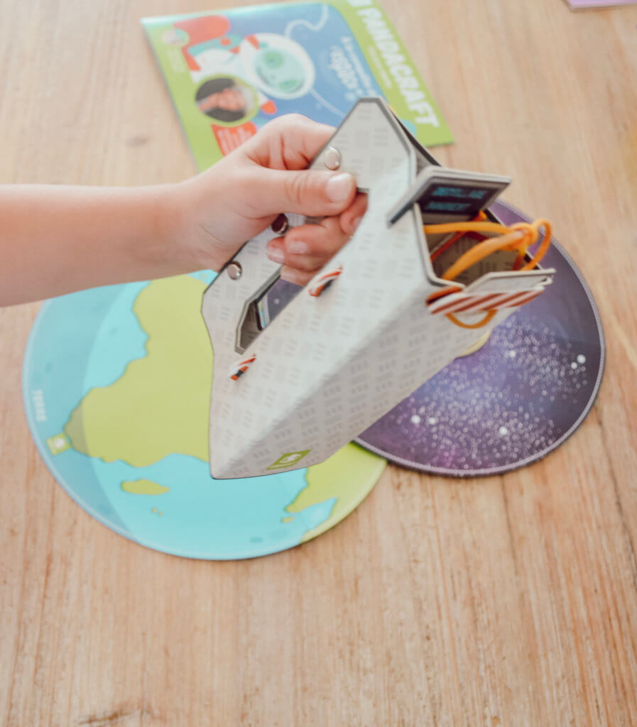 À noter : je trouve qu’avant 3 ans et demi, le kit créatif est un peu trop précis et minutieux à mettre en œuvre, à mon sens, d’autant que la construction bricolée peut s’avérer fragile avant cet âge. Bien que le kit soit pour la tranche d’âge 3-7 ans, 4 ans me semble l’âge idéal pour cet abonnement. Si vous avez un enfant plus jeune chez vous, attention aux petits objets qui pourraient être avalés.