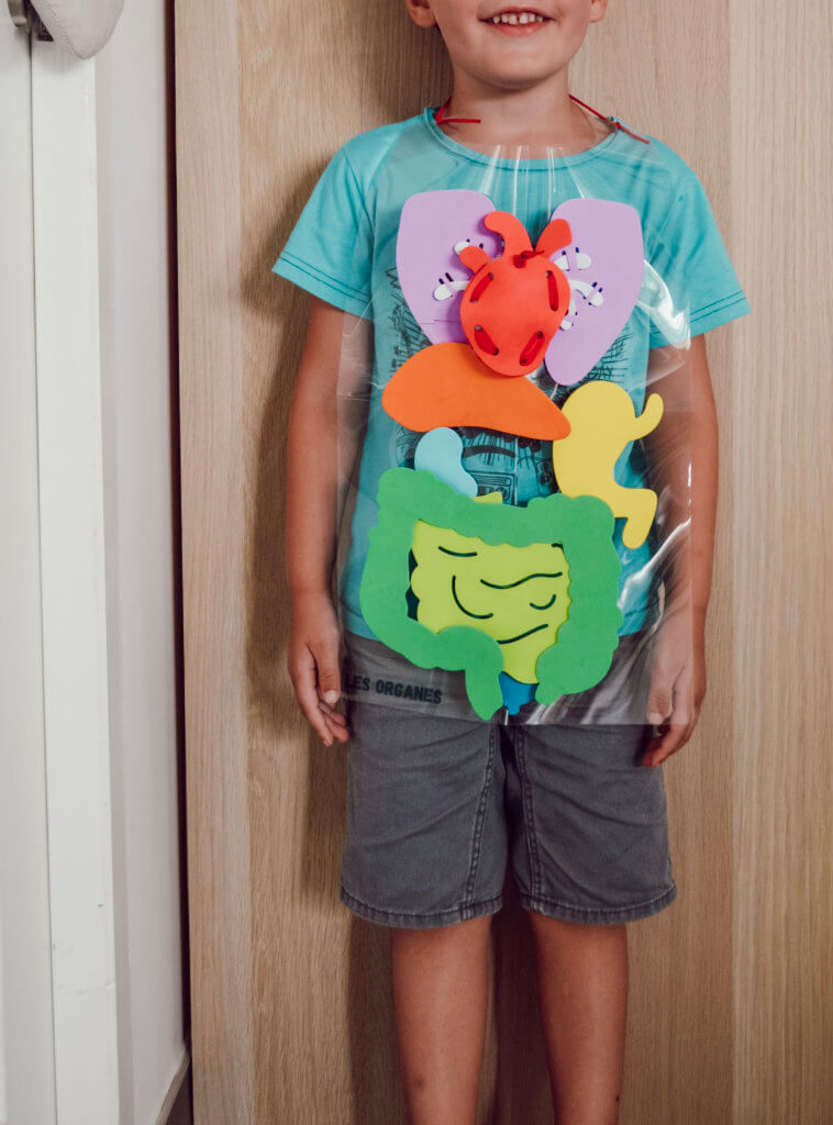 Au 3ème mois, Pierre a déjà pris l’habitude de recevoir son courrier. Une fois l’activité manuelle réalisée, il aime conserver sa création pour jouer. Durant plusieurs semaines en septembre, enfiler son tablier d’organes a été un vrai rituel quotidien !