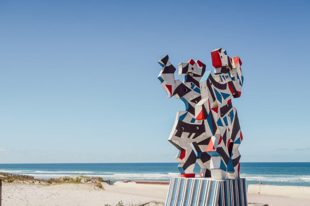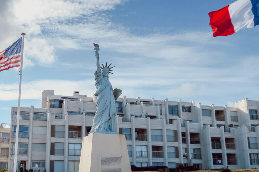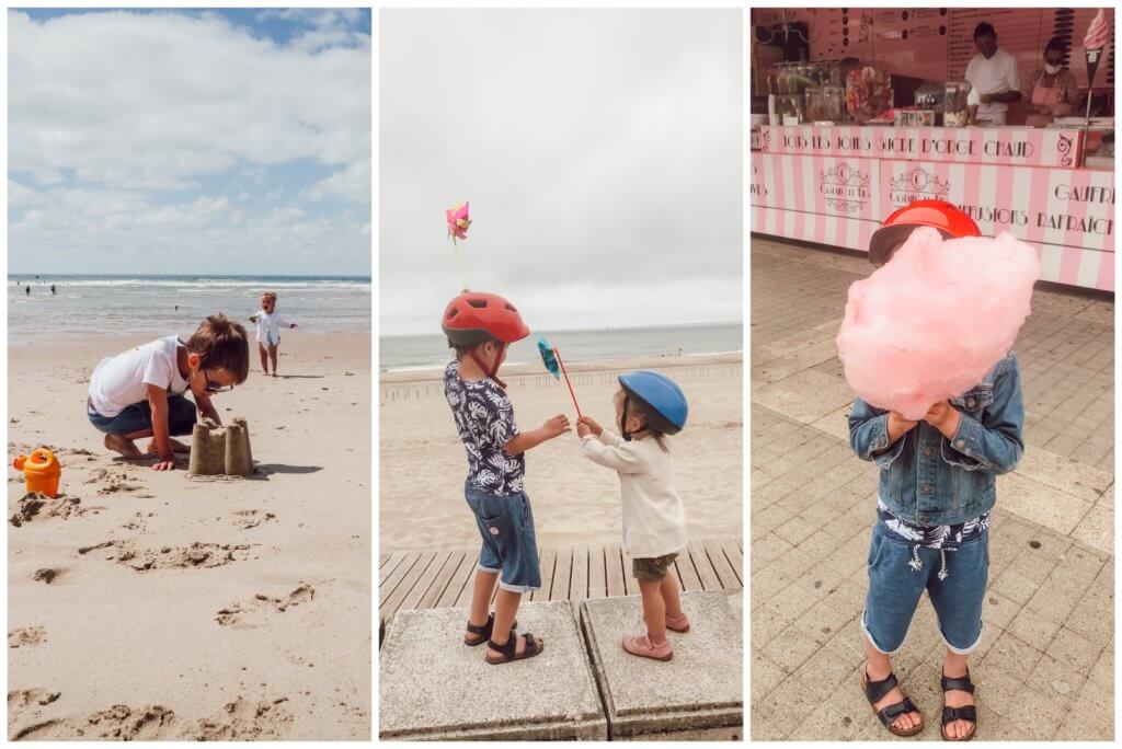 Vous l’aurez compris, on s’orientait vers des vacances sportives et détente mais pas forcément culturelles… Quoique j’ignorais que Soulac était le dernier endroit que la statue de la Liberté offerte par la France aux USA avait touché ! Ainsi, l’aller et le retour ont été les deux plus grosses journées à vélo. Ensuite, nous sommes restés une semaine à Soulac dans la même résidence de vacances : la résidence Goelia qui ne cassait pas trois pattes à un canard mais le rapport qualité-prix était très correct. Les enfants ont beaucoup joué sur la plage, nous faisions nos courses chaque jour à vélo au marché, nous allions prendre notre café chaque matin dans le centre, nous avons fréquenté quelques restaurants, mangé des bonnes gaufres et glaces aux goûters et découvert les plages alentours à quelques kms à la ronde… Du farniente et du calme durant la semaine avec une vingtaine de km à vélo maxi par jour, je crois. Nous aurions été seulement en couple, c’est avec plaisir qu’on aurait pédalé une trentaine de km plus loin pour découvrir quelques vignobles… La présence des enfants et la situation post-COVID ne nous ont pas poussés à le faire…
