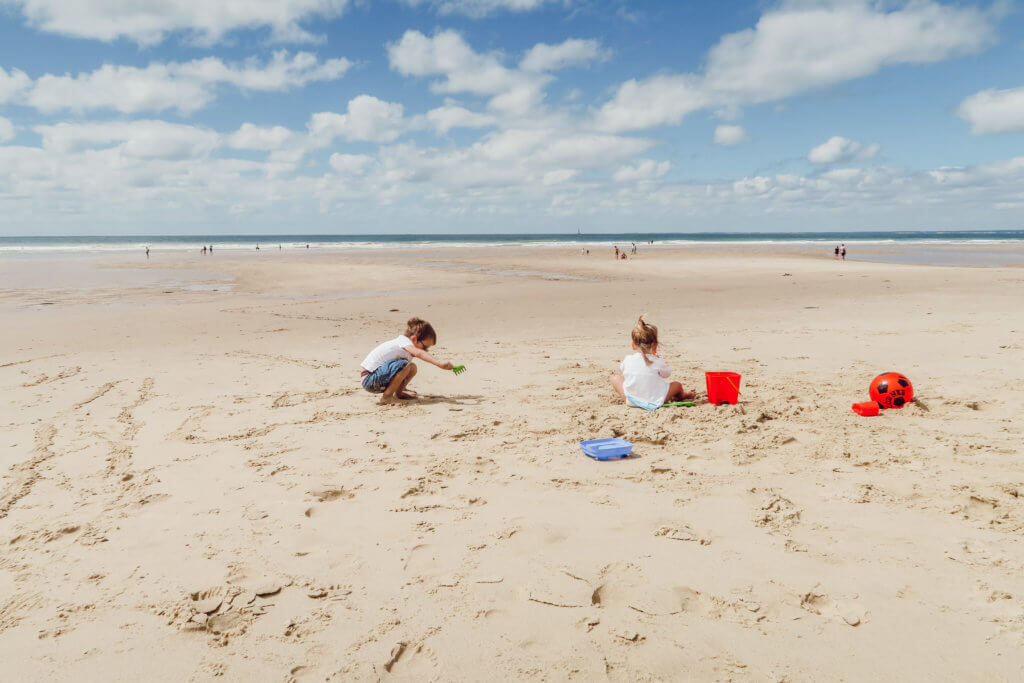 • Pour la plage, nous n’avons pas pris de parasol bien évidemment, mais vu la configuration de la remorque, on aurait pu caler notre tente de plage entre le sac de randonnée et la valise, à la verticale, elle n’aurait ni pris de place, ni pesé. Mes enfants avaient un chapeau, des lunettes de soleil et de la crème solaire.