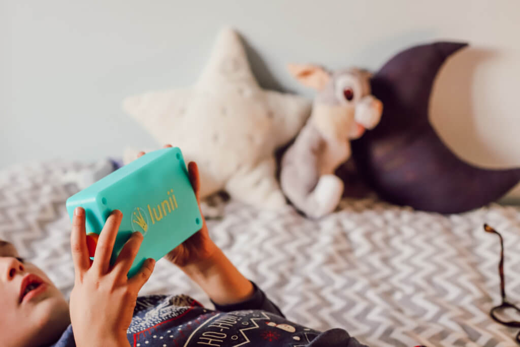 Dernièrement sur ma chaine YouTube, je vous ai parlé de la lettre au Père-Noël de toute la famille. Dans celle-ci, je vous racontais mon souhait d’offrir à notre fils, Pierre (5 ans et demi à Noël), Ma Fabrique à histoires Lunii et le casque audio Octave de la même marque. Il faut dire que ce petit garçon est un féru d’histoires! Chaque matin, lorsque son Papa l’emmène à l’école, ils composent ensemble une nouvelle histoire mettant en scène des personnages humains ou des animaux. Chaque soir, la lecture d’un album jeunesse ou d’un documentaire jeunesse avec moi est aussi inévitable. Même lorsqu’on rentre tard le soir d’un dîner entre amis, il voudrait qu’on lui raconte une histoire avant de s’endormir! Ayant eu un langage développé très tôt, il a rapidement su fixer son attention sur les livres et dégager les subtilités d’une histoire et des dessins associés (ou bien c’est l’inverse qui s’est produite : les livres l’ont aidé à avoir un vocabulaire développé). Dès 2 ans, lorsqu’il feuilletait un livre, il disait “je lis Maman!” et aujourd’hui, il est déjà bien avancé dans sa capacité à déchiffrer des mots. Chaque jour, Pierre passe plus d’une heure à parcourir la littérature jeunesse qu’on lui propose.