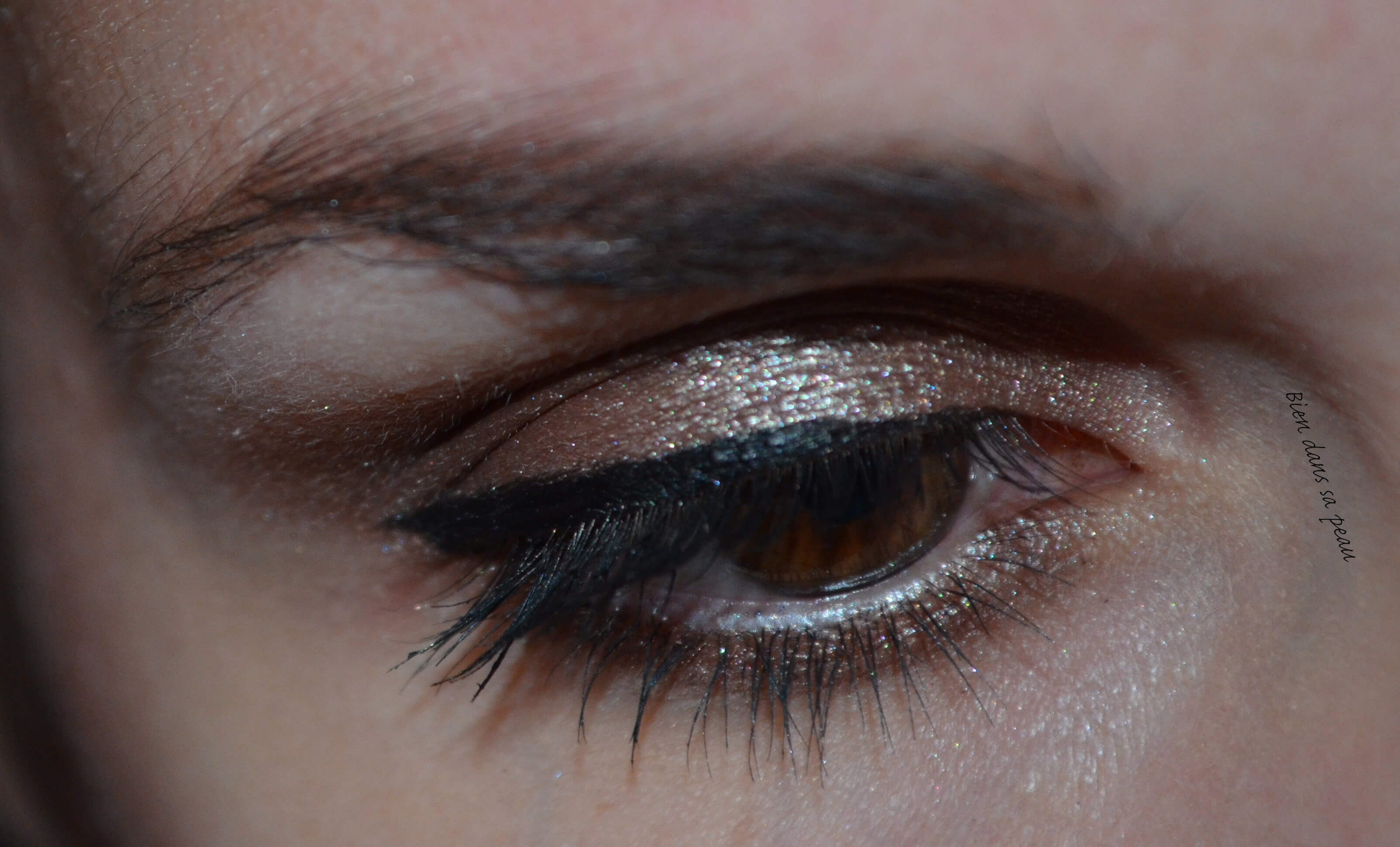 J’avais quand même une petite crainte par rapport à ces fards du fait qu’ils sont réputés pour pouvoir s’utiliser secs pour un fini scintillant et transparent ou avec un pinceau humidifié pour un résultat métallique hyper intense et plus opaque. Mais bien souvent, avec ce type de fards, le rendu à sec est justement trop transparent ! Tandis que dans ce cas, voyez les swatches, le rendu sec ne pêche pas par son manque de pigmentation! Les fards sont magnifiques appliqués secs ou humides. Pour obtenir ce rendu humide, j’ai légèrement humidifié mon pinceau avec du Fix+ de MAC : certes, le résultat est splendide en version humide !