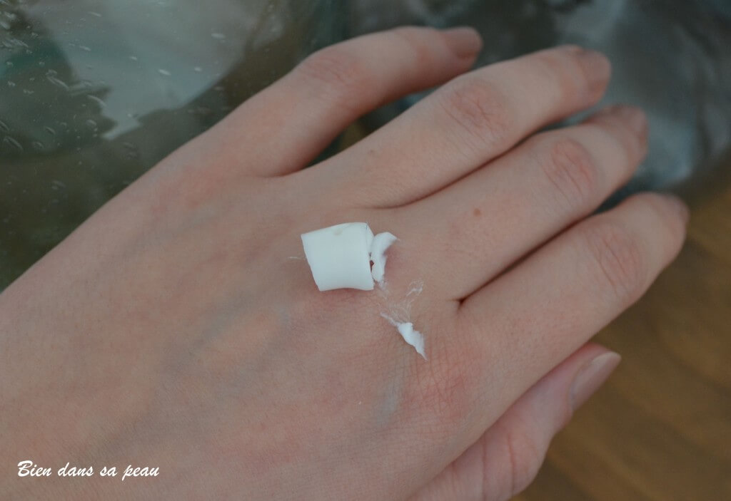 Cette crème est épaisse et hyper onctueuse et à la fois, elle pénètre hyper rapidement sans laisser de film gras. C’est là que le truc est un succès. Je peux masser mes cuticules quelques minutes avec et elle laisse mes mains douces et la peau souple et cette efficacité dure plutôt bien dans le temps. De plus, l’odeur est délicate, non fleurie et non sucrée et donc, non-entêtante (chose hyper importante pour moi).
