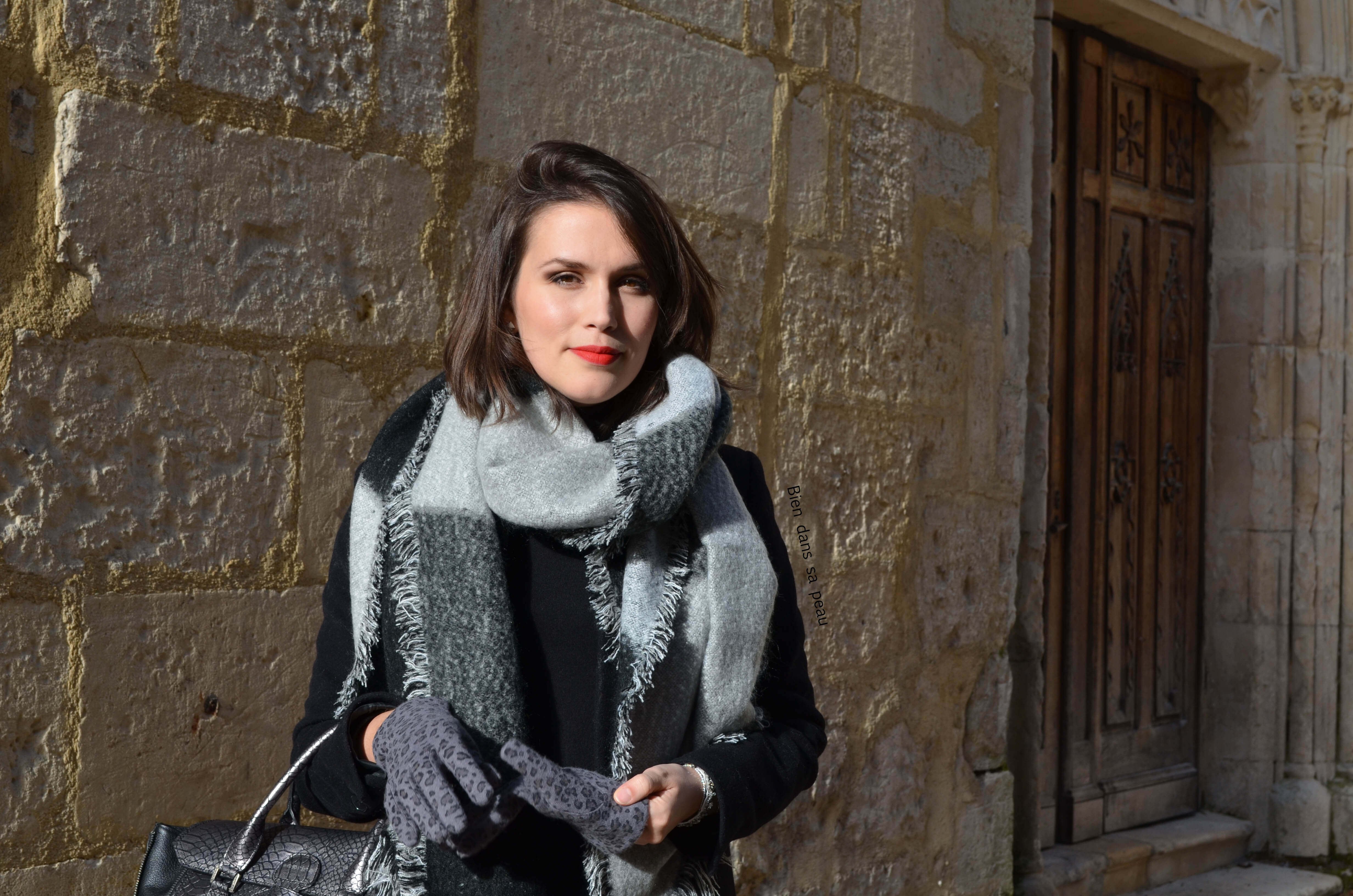✔️ Je porte une belle écharpe, large comme le plaid utilisé pour boire un thé dans le canapé devant un film où le Père-Noël est l’acteur principal. Si, si, il existe !