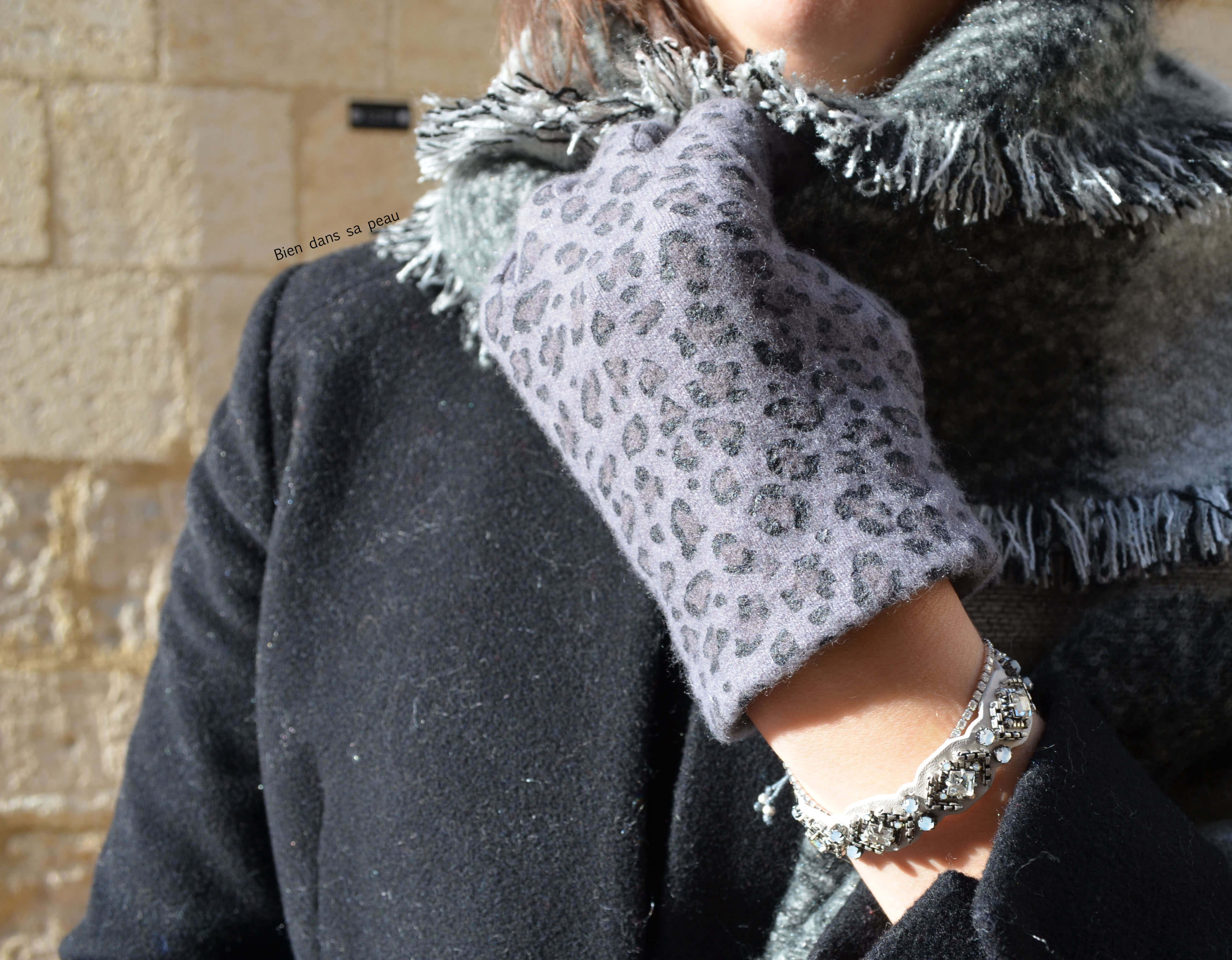 ✔️ Je porte des gants (Imprimé animal. CQFD) et un bandeau cache-oreilles qui tient aussi bien chaud aux oreilles comme son nom l’indique.