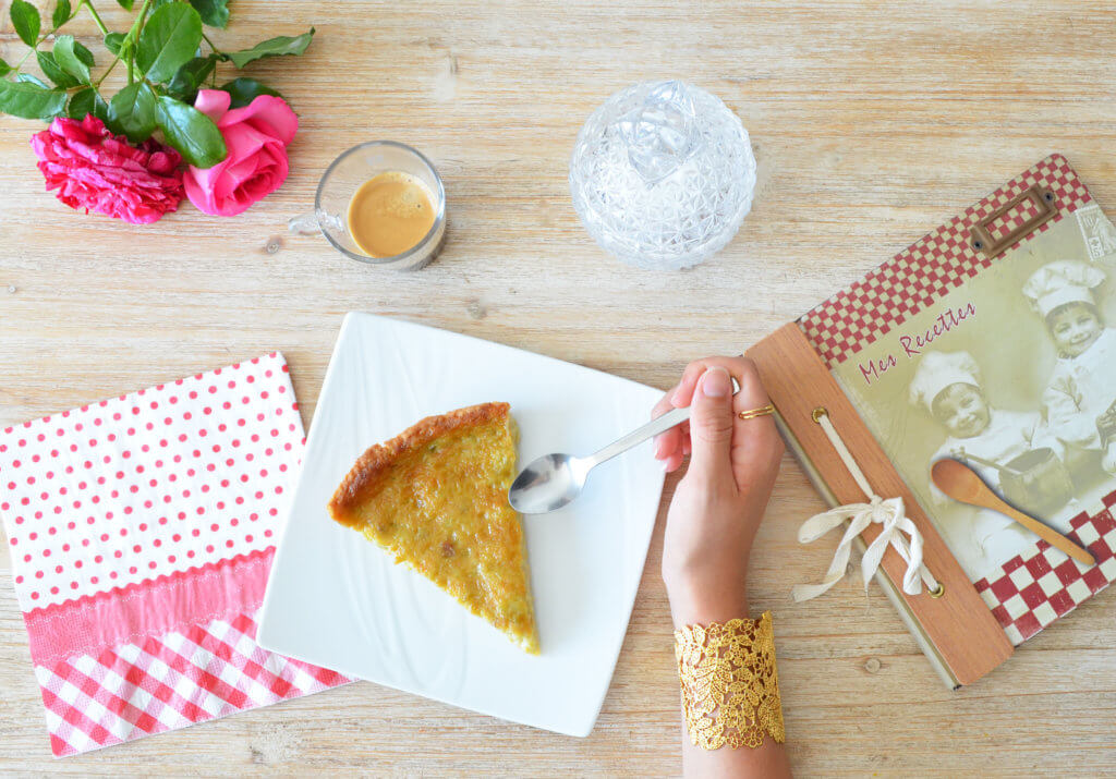 Pour la pâte, mélangez les ingrédients dans le bol du batteur Kenwood avec le batteur K et laissez reposer la pâte une heure (ça c’est la consigne, mais en pratique, je la fonce directement ou juste après avoir fait la garniture), puis foncez la pâte dans un moule. Piquez le fond à coups de fourchette et à souhait, faites des stries sur les bords avec cette même fourchette.