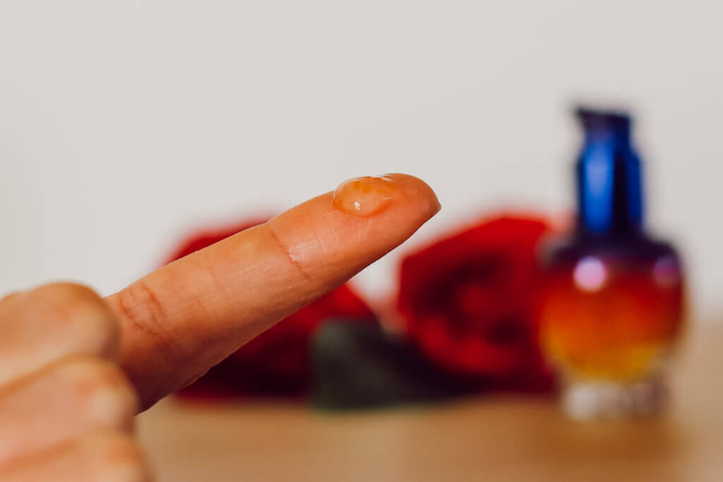 Comme expliqué dans mon dernier vlog, cette texture à la fois collante et légèrement huileuse ne m’ont pas attirée à appliquer l’huile-en-sérum, c’est pourquoi j’utilise ce produit sur les mains que j’aime chouchouter autant que mon visage. J’utilise le sérum regard sur le contour des yeux comme il se doit. Chacun des deux soins s’imprègne rapidement sans nécessité de masser.