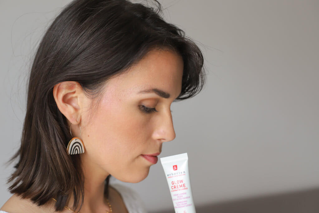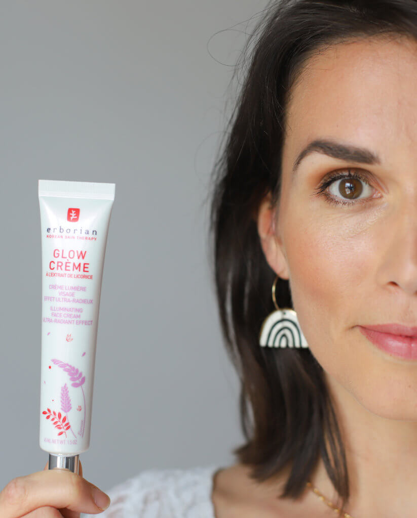 Une chose est sûre, ma peau n’est pas aussi belle qu’elle l’était aux débuts de mon blog. Excepté pendant mes grossesses, ma peau ne m’a jamais semblé parfaite, certes. Aujourd’hui, je dois avouer que j’ai du mal à accepter son évolution. En prenant de l’âge, la peau perd en élasticité par manque de production de collagène. De mon côté, ce n’est pas ça que je ressens encore. En revanche, en vieillissant, ma peau se déshydrate et de ce fait, mes pores paraissent plus dilatés et la peau est moins lumineuse. C’est tout à fait mon cas d’autant que j’ajoute au temps qui passe des nuits courtes et donc la fatigue n’arrange rien. Quand j’ai reçu cette nouvelle gamme d’Erborian, j’étais donc enthousiaste à l’idée de retrouver un peu de glow sur le teint.