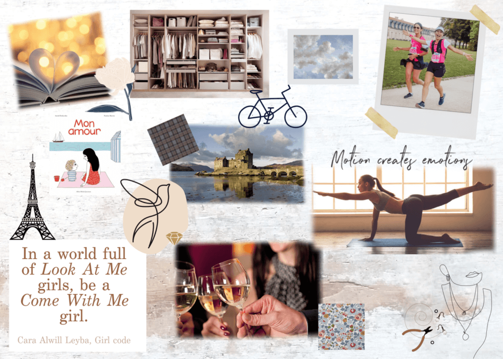 Cette fois-ci, comme je vous montre mon vision board, il est plus suggestif, me laissant ma part de secrets. Mes envies tournent autour de :