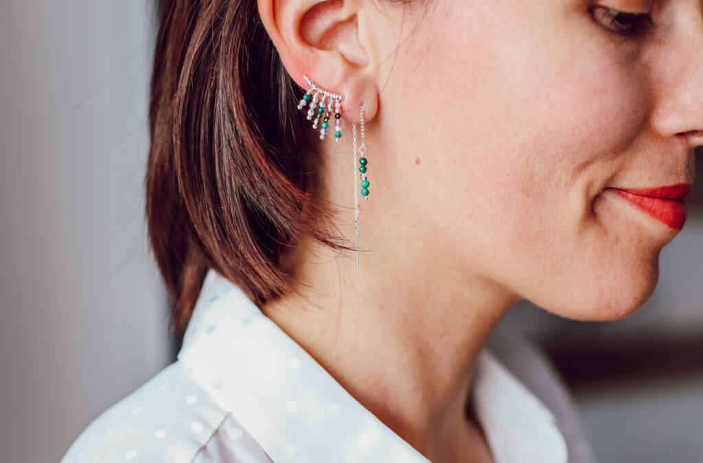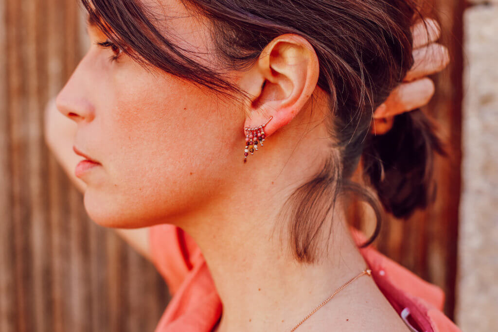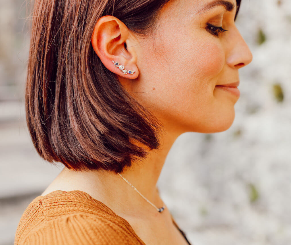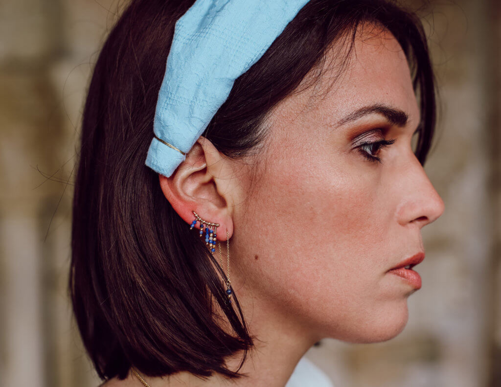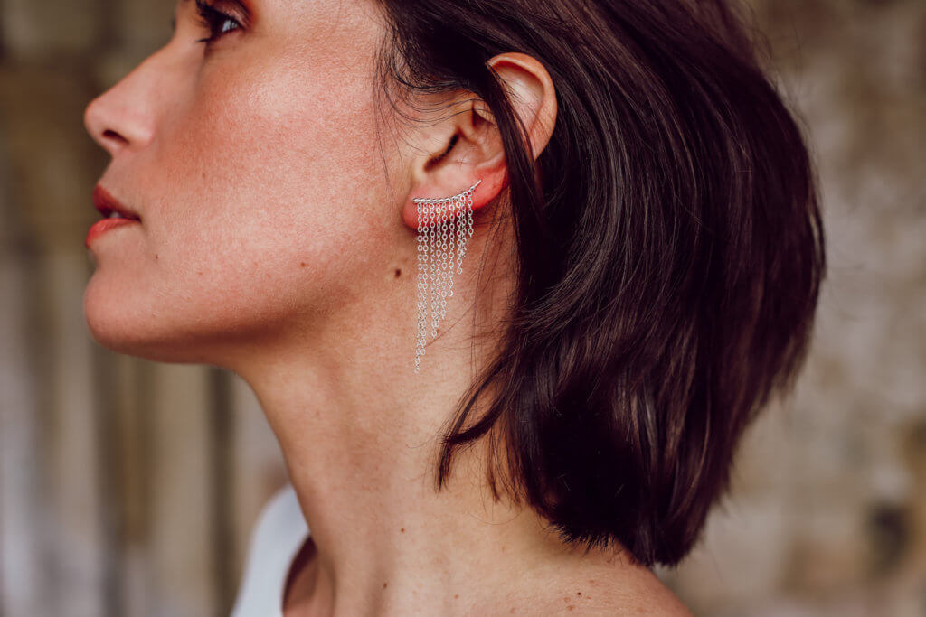 À l’époque où je distribuais une marque américaine de bijoux, la marque était précurseur de pièces modernes et modulables. Parmi les pièces modernes, ils étaient avant-gardistes sur les boucles d’oreilles grimpantes (“climber earrings”) ou les boucles d’oreilles qu’on place sur un clou derrière le lobe d’oreilles. Je vous proposais déjà des boucles qui se place derrière le lobe d’oreille avec les boucles Livie, les boucles Omar et les boucles Rosita…