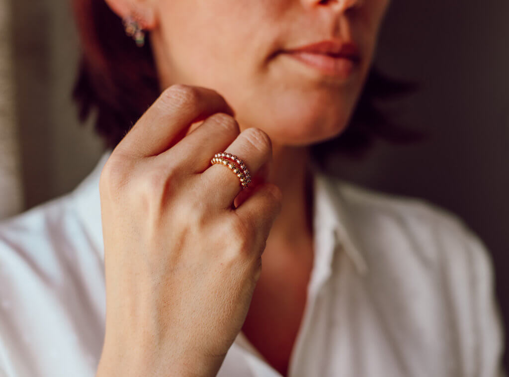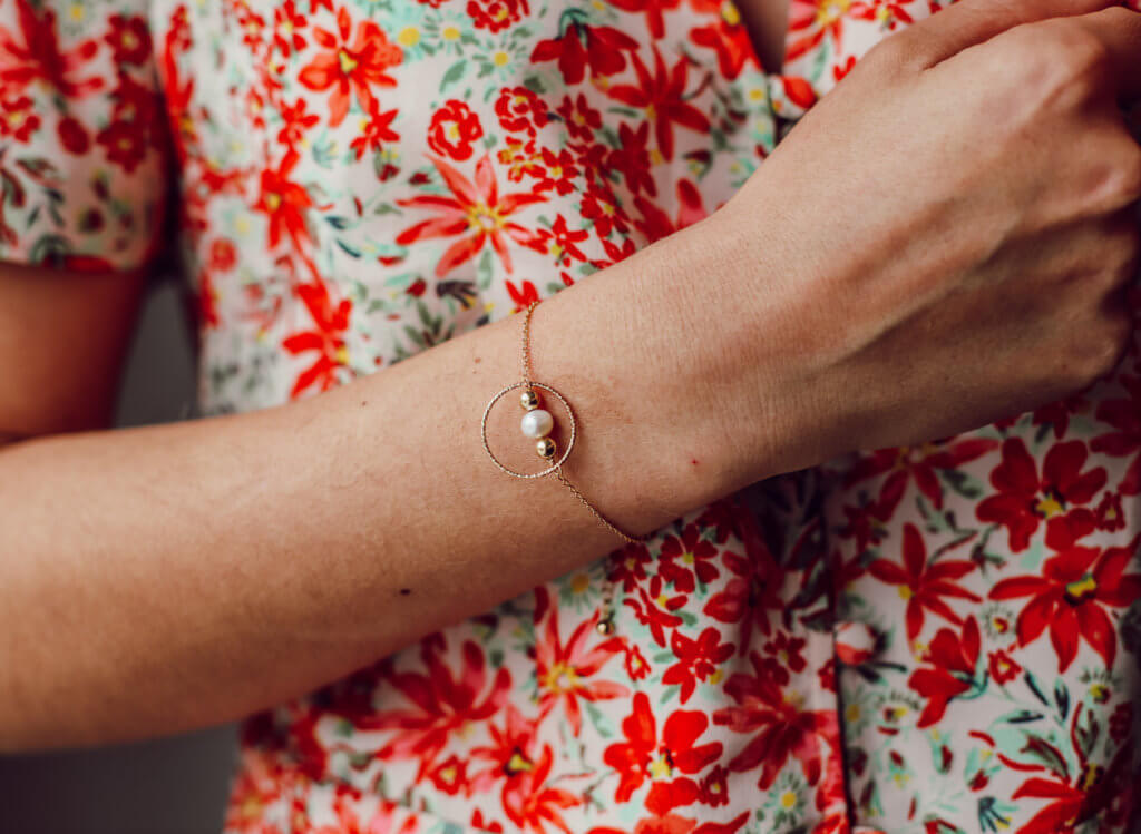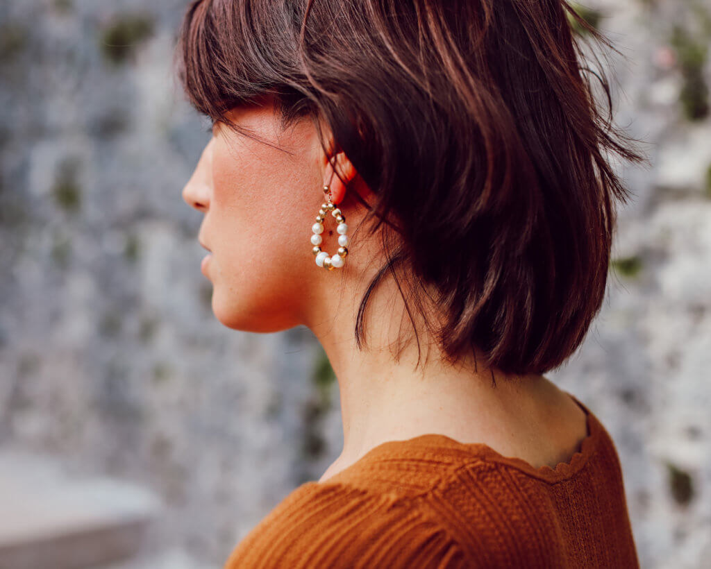 Je suis persuadée que porter des perles d’eau douce n’est pas ringard mais plutôt chic. J’aime moderniser cette matière en l’assortissant avec le goldfilled ou d’autres pierres semi-précieuses, sous différentes formes…