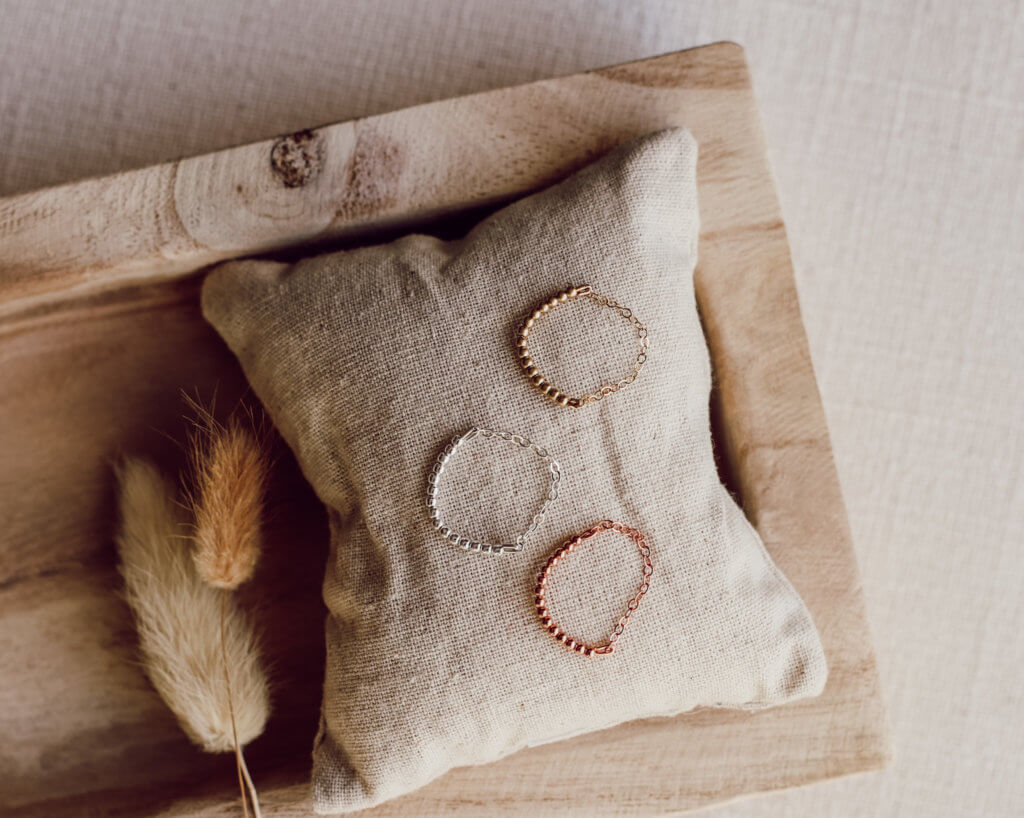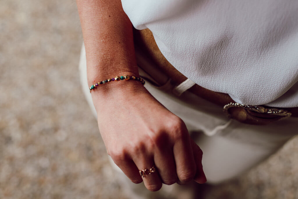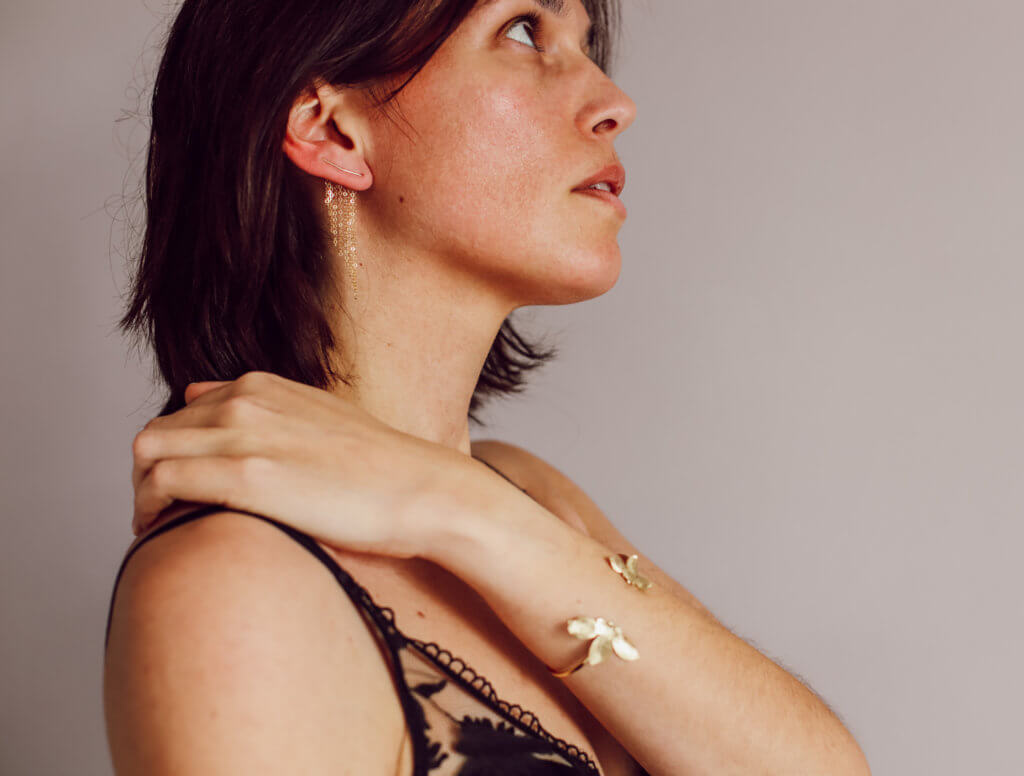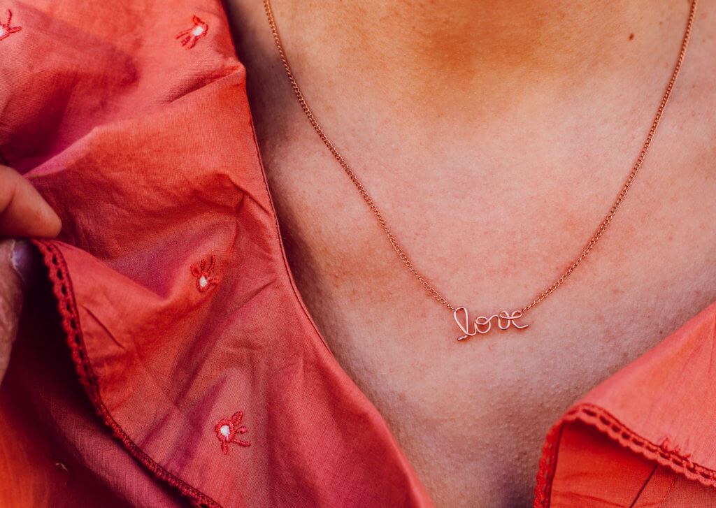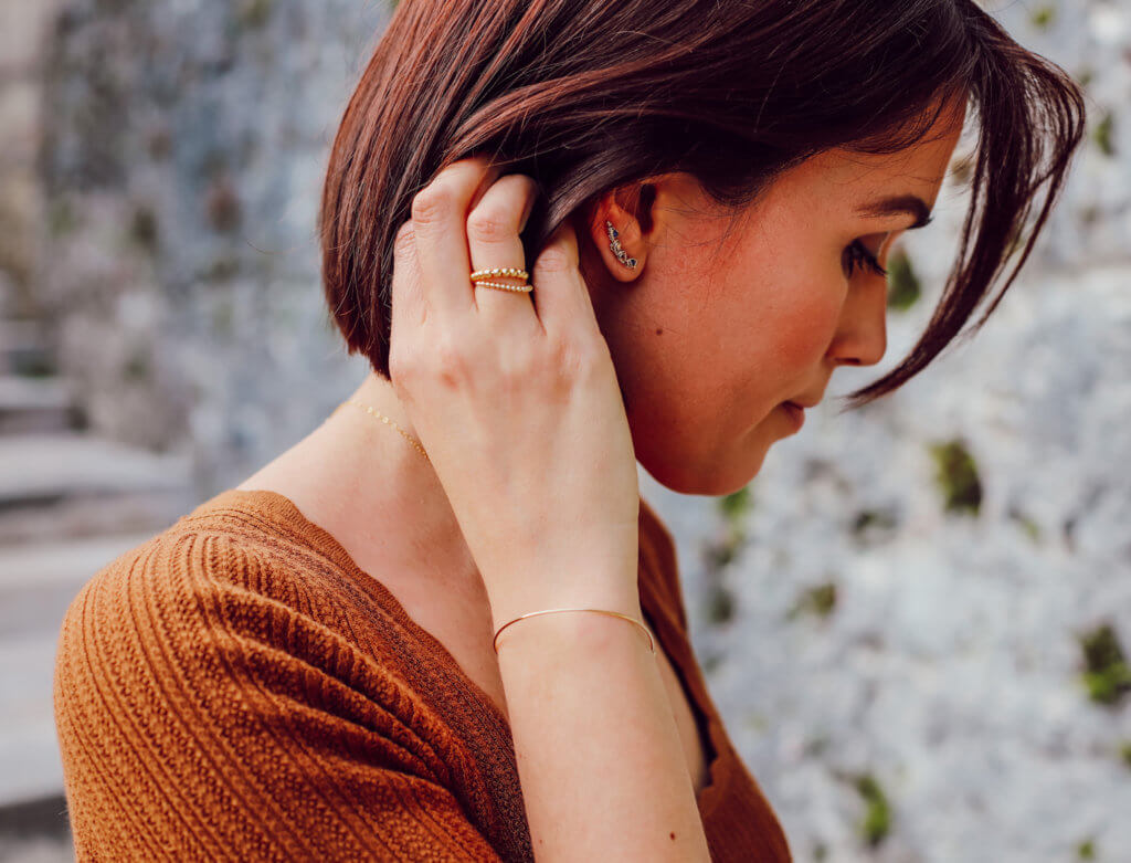 J’ai alors eu très envie d’en apprendre davantage sur le travail de ce fil de métal précieux, notamment parce que les possibilités de créations sont presque illimitées. Aussi, j’aime le concept de pouvoir vous proposer des bijoux personnalisables. Pour ce printemps nait donc la gamme “Au Fil de Vos Mots” : bracelets, boucles d’oreilles, Colliers, vous pouvez raconter votre histoire sur vos bijoux pour porter sur vous vos émotions, des mots doux ou les prénoms qui vous sont chers. Cette technique est le fruit d’un travail artisanal minutieux de torsade et sculpture du fil de métal précieux : goldfilled 14k jaune ou rose et argent 925/1000. Bien sûr, mon cœur balance pour le goldfilled qui est un traitement venant des USA. En combinant pression et chaleur, la fabrication du goldfilled consiste à recouvrir une base laiton d’une solide couche d’or. Le poids d’or dans un bijou gold-filled correspond à 1/20 du poids total du produit soit environ 50 à 100 fois plus que dans un produit plaqué or 3 microns qu’on connait habituellement. De manière générale, le gold filled a une excellente qualité et durabilité, meilleure que celle du plaqué or.