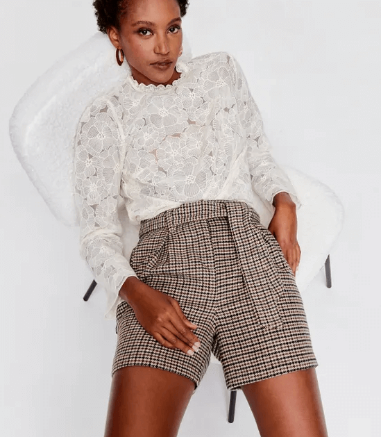 - J’adore cet ensemble short + veste ! Retrouve ici la veste à carreaux Promod !