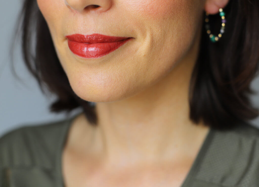 Spiced red est un rouge ravissant qui me va bien au teint. Il a des sous-tons brique qui le rendront plus facile à porter au quotidien et en toutes circonstances, selon moi, plus que la version Ruby. Avec le Nude Pink, ils forment mon duo favori parmi les 3.