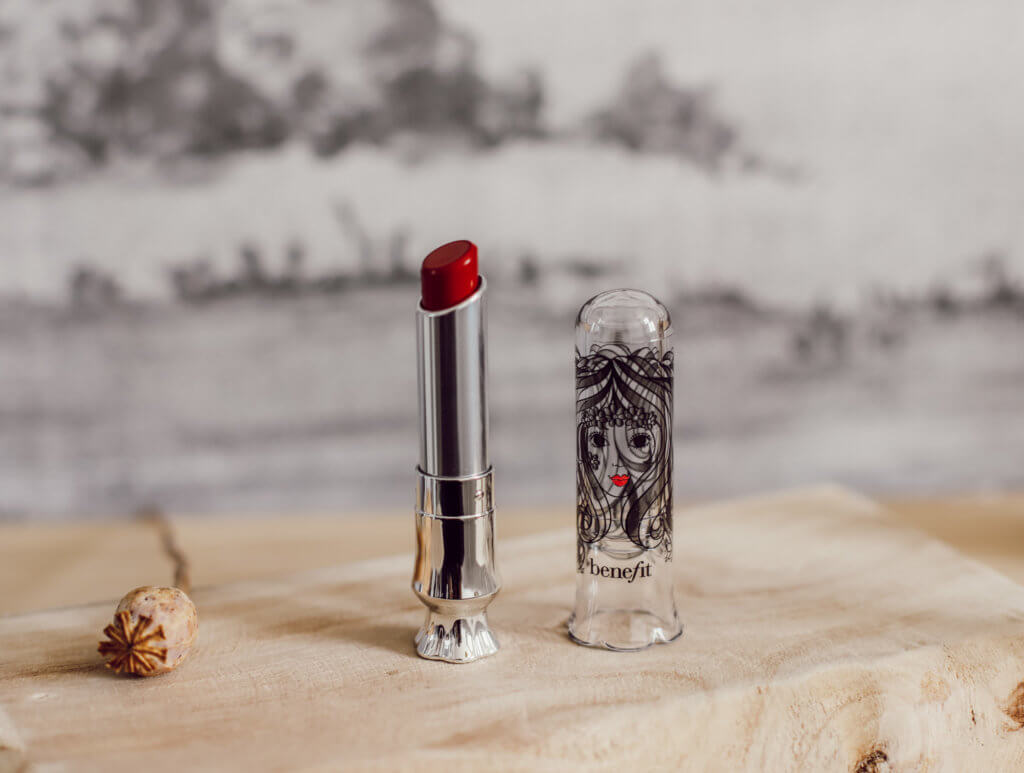 Benefit vend ces produits make-up comme des baumes teintés hydratants. À mon sens, après avoir testé trois teintes, je trouve que ce sont des rouges à lèvres hydratants. Effectivement, la pigmentation soutenue est au rendez-vous tandis que, selon mes références, des baumes auraient un fini plus en transparence… Pour hydrater les lèvres, ces baumes sont enrichis en acide hyaluronique, en beurre de mangue et en huile de graines de luffa ! Et pour le coup, ça glisse! On est sur une texture glissante et fondante. Comme ils sont pigmentés, il faut tout de même prendre son temps pour les appliquer de façon à obtenir un contour assez défini.
