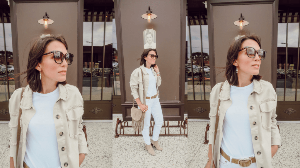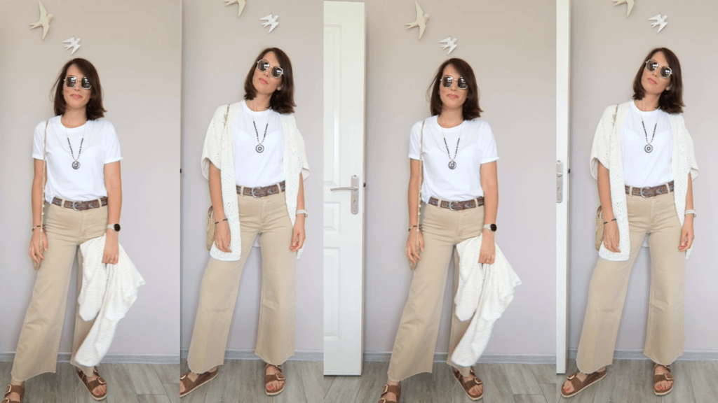 Toujours dans un REEL Instagram, j’ai partagé avec vous 2 looks avec un pantalon denim jupe-culotte, selon la paire de lunettes de soleil reçue de chez Le Petit Lunetier (produits offerts : -10% sur toutes les montures du site avec le code JUSTINE25).