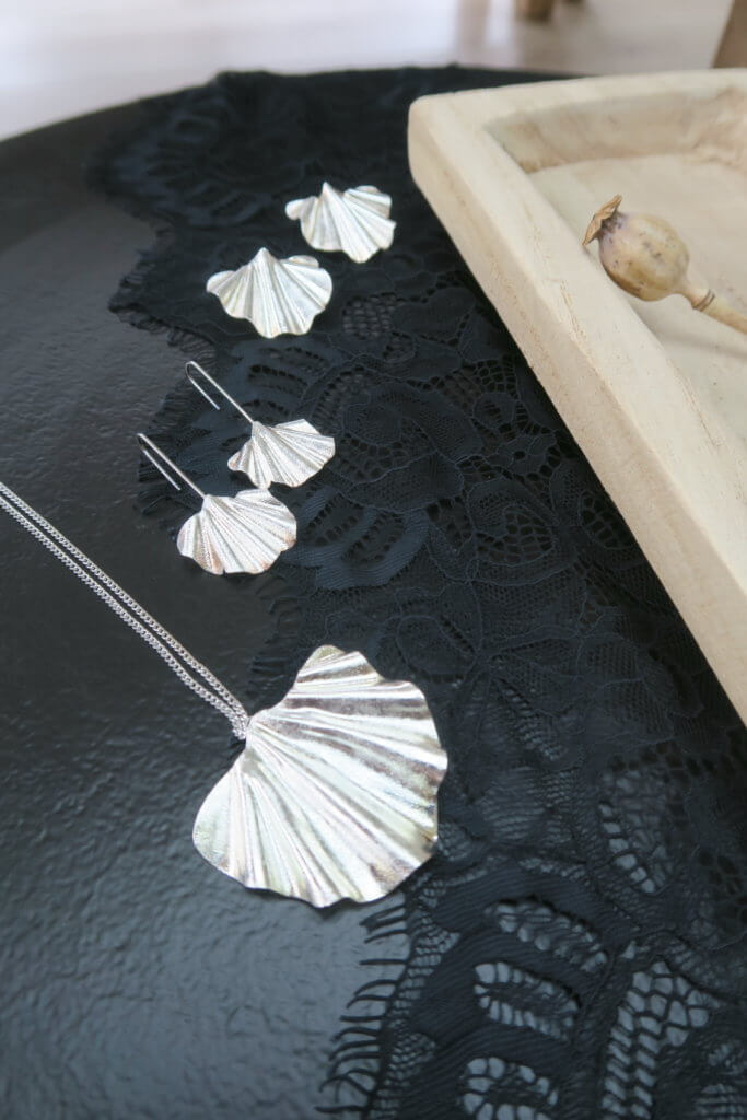 La parure Paloma s’inspire de soie organza faisant des plis, ou d’un pliage d’une feuille de papier mais force est de constater, lorsque je vous rencontre, que vous y voyez une inspiration végétale.