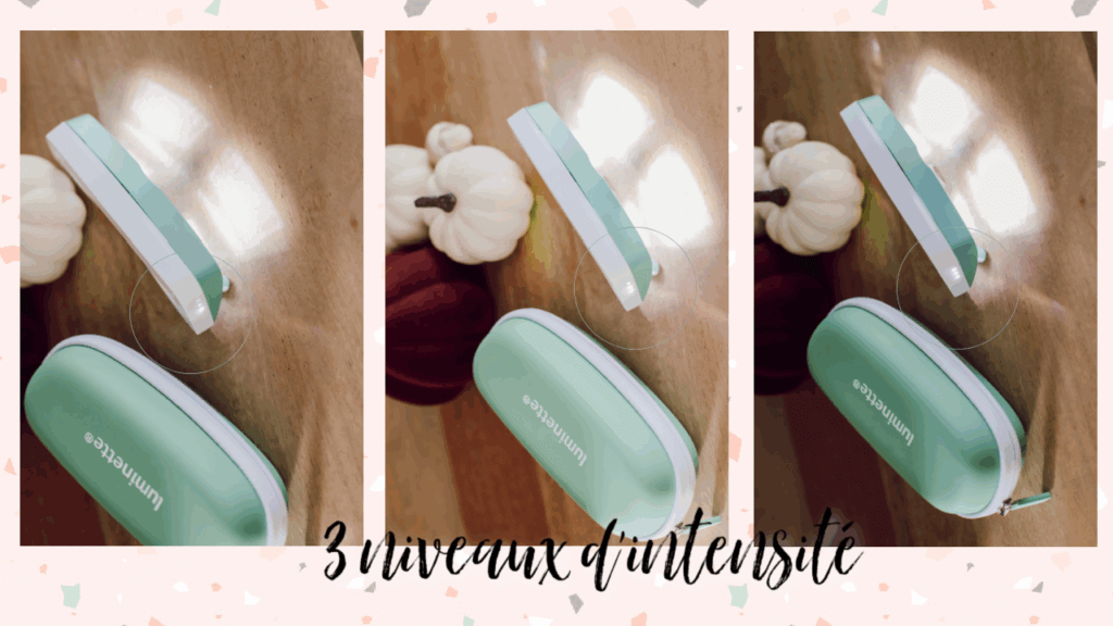 Bref, je trouve le dispositif si compact et discret, qu’il s’intégre dans ma vie quotidienne sans obliger à “faire une séance dans une cabine”. J’utilise très souvent la Luminette en passant l’aspirateur chaque matin, après le petit déj’, quand les enfants sont sur la route de l’école avec leur papa.